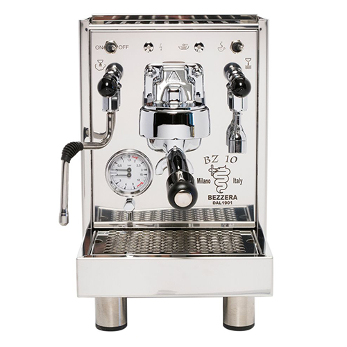 De Bezzera BZ10 espressomachine is een machine met professionele prestaties door de warmtewisselaar voor direct koffie en stoom. Mooi compact gebouwd met een body in RVS. Uniek aan de Bezzera BZ10 is de temperatuurcontrole, met de twee verwarmingselementen die in de zetgroep verwerkt zijn. Hierdoor is de water temperatuur voor de espresso uitermate stabiel: essentieel voor een perfecte espresso. Verder worden de kranen voor stoom en heet water bediend met de “push & go” hendel, door te duwen aan de hendel krijg je direct 100% stoompower en waterafgifte.